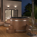 Kylpytynnyri 160 ulkokamiinalla on ihanteellinen valinta niille, jotka haluavat laadukkaan kotispa-elämyksen kompaktissa koossa. Halkaisijaltaan 160 cm, tämä tynnyri sopii pienemmällekin pihalle tai terassille – silti jopa kuusi henkeä mahtuu nauttimaan lämpimästä vedestä.