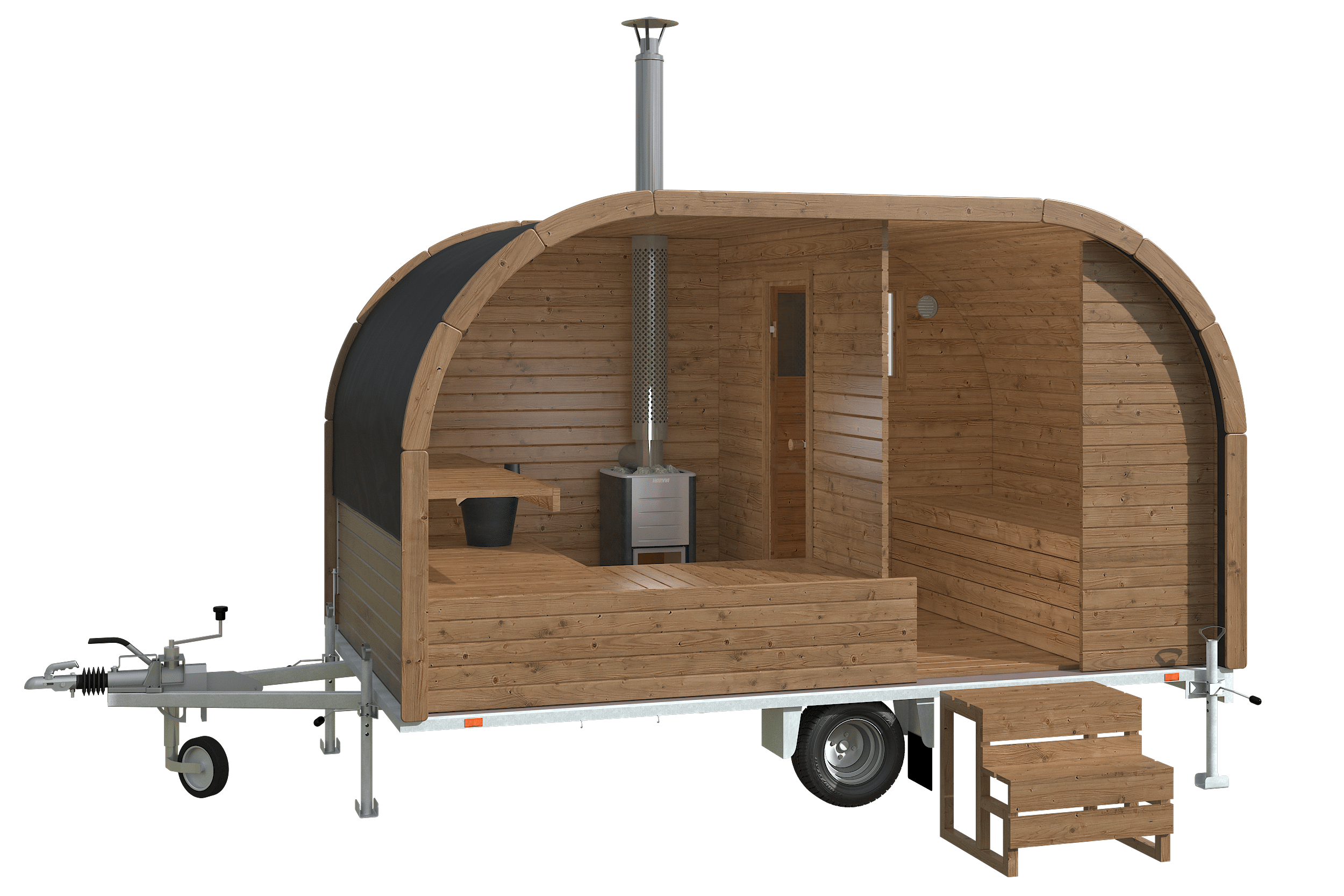 Katso lisääSaunavaunu on laadukas siirrettävä saunaratkaisu, jossa useampi henkilö voi saunoa samanaikaisesti. Lämpökäsitelty puu, Harvian puukiuas, LED-valaistus ja stereojärjestelmä – kaikki valmiina käyttöön ilman kiinteää sähköliitäntää.